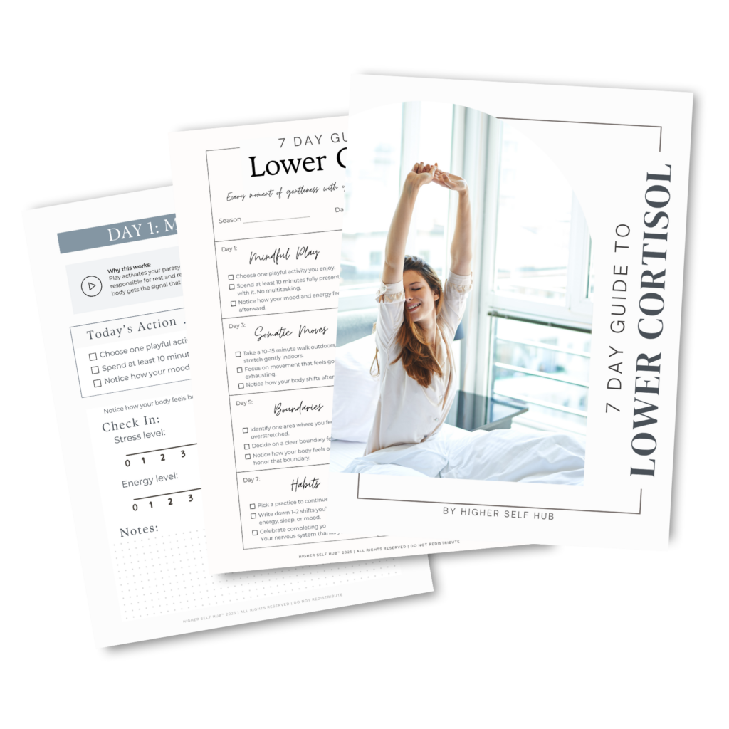 Want a simple place to start?ย The 7-Day Guide to Lower Cortisol gives you one small, body-based practice per day, plus a place to track what you notice. No overhaul required.